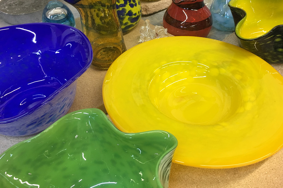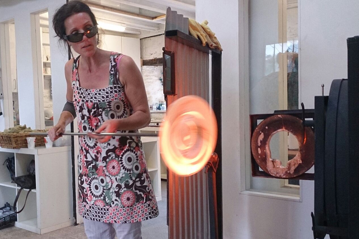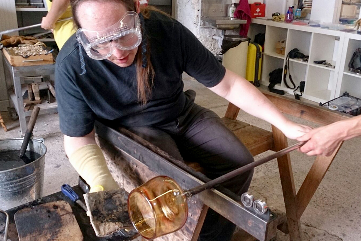An excellent follow-on day for those who have already taken part in a beginners’ glassblowing class, providing an opportunity to consolidate skills learned in the previous session. On this second day of glassblowing, you will be making a tumbler, bowl and a plate. This course is a level up, and spinning out a plate (how windows were made in the 16th century) is both fascinating and exciting. You will gain further experience in gathering, handling and forming hot glass and we will focus on the development of key skills.