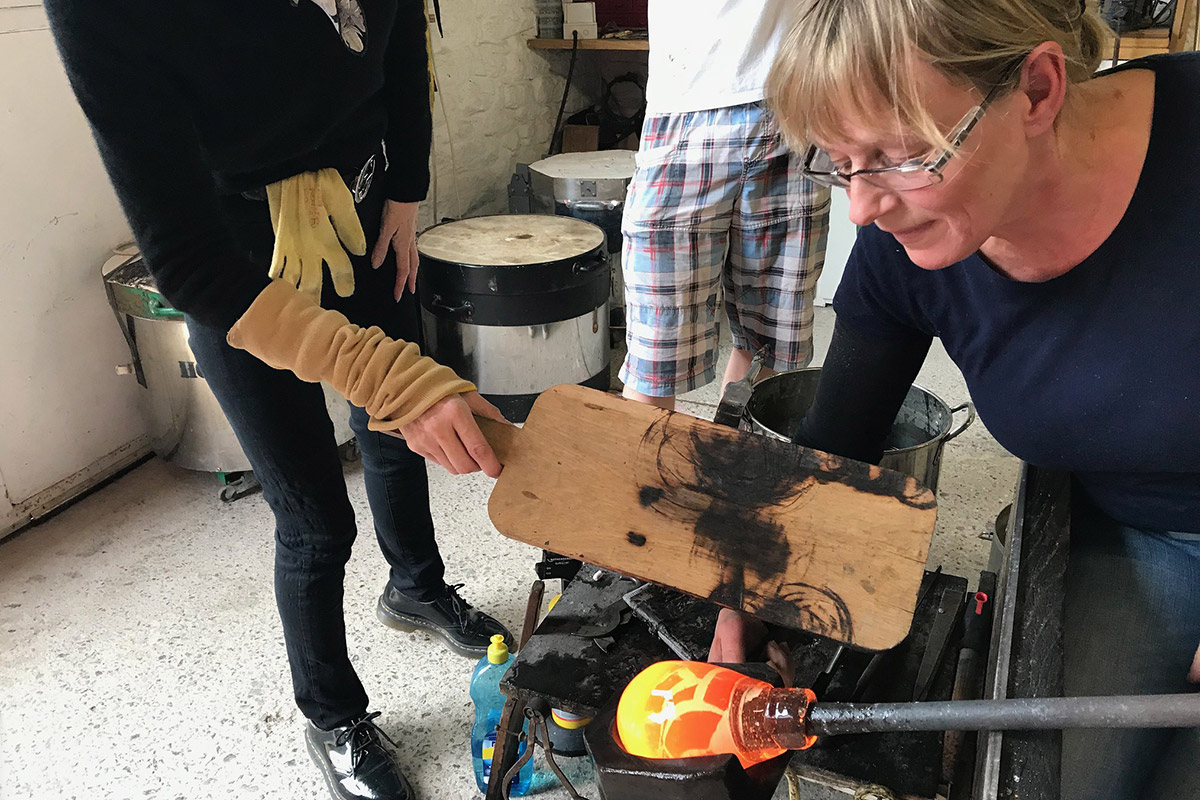 The Glass Hub team are all professional artists and tutors with many years experience. We run a number of furnaces, and although we do not guarantee a particular tutor for the 1-day blowing courses you can be sure that each tutor will be highly qualified and experienced.