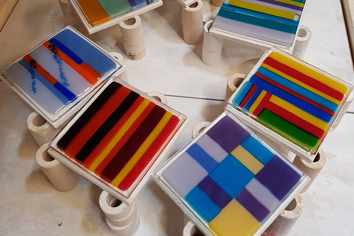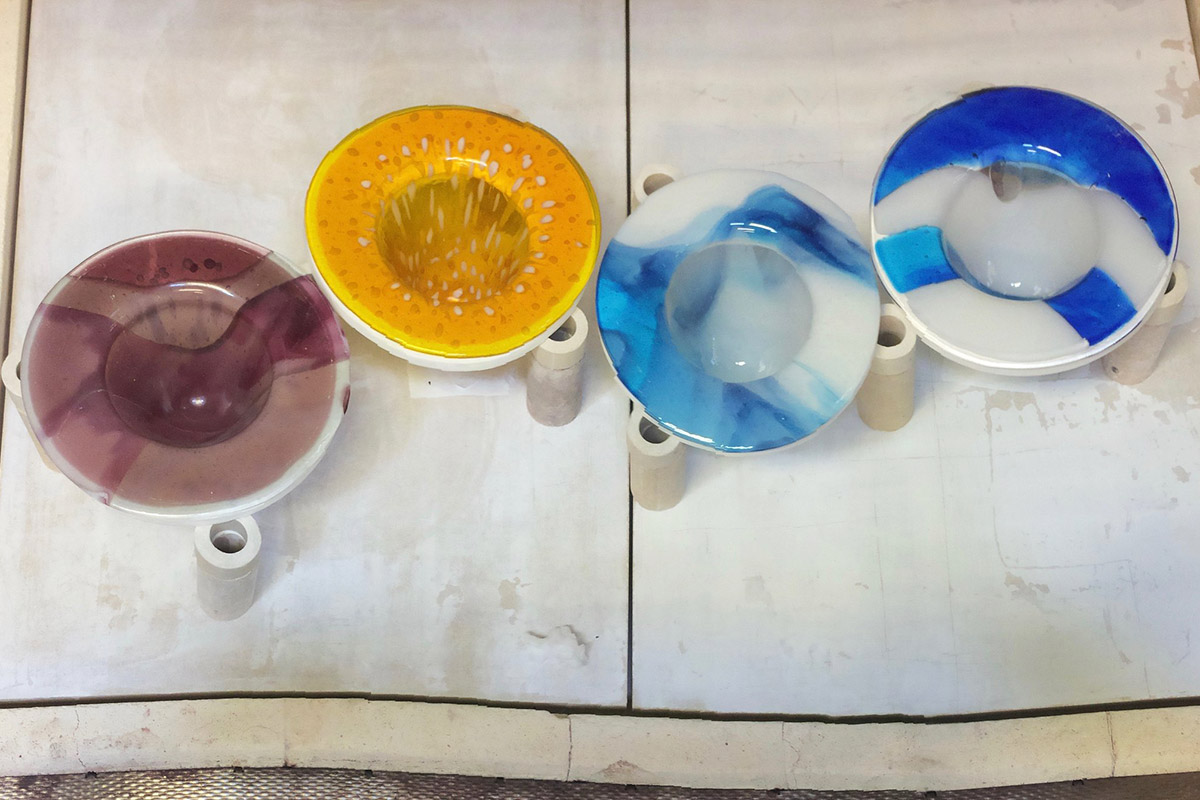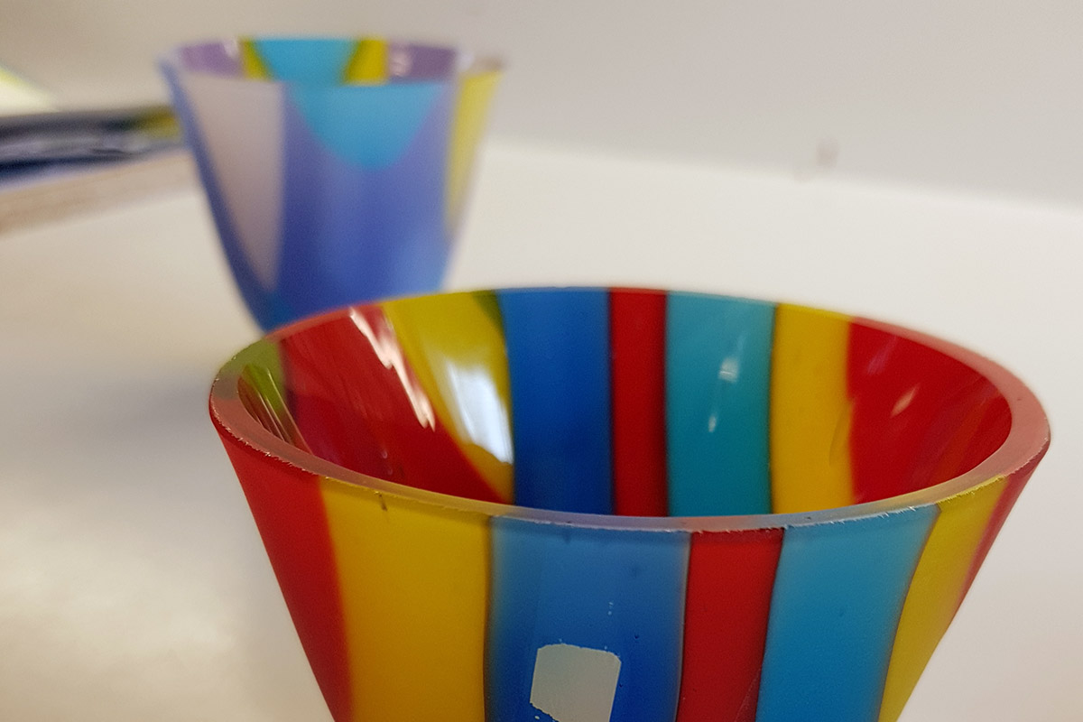 Extend your kiln forming experience and discover how to create vessels using the ‘Drop-Out’ technique. We will work with pre-fused blanks to explore the specialist construction and firing techniques as we fire a ‘drop-out’, as well as producing our own colourful fused blank to take home and fire. We will cover cutting, assembly, inclusions, kiln firing and slumping. We will also look at finishing techniques. A great way to develop new ideas and skills. Some prior experience with glass fusing is required for this course.