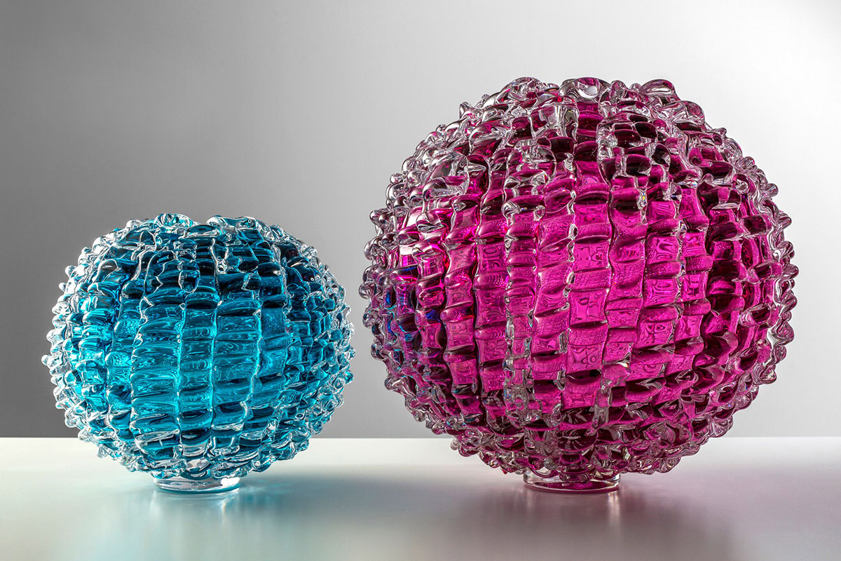 Huskie has always been interested in pattern whether it is within in nature, textiles or geometry. She is always searching for new influences and how she can include the patterns in hot glass.