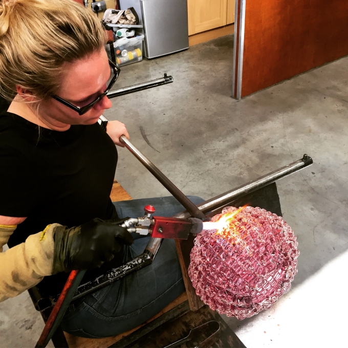 Katie Huskie will lead this weekend in the Hot shop, and focus upon the fundamentals of form and colour in blown glass. Her class will concentrate on the core principals of glassblowing, through the process of blowing basic forms well, and the exploration of colour with your chosen designs. This class is designed to improve glassblowing skills, ideas and confidence in the bench.