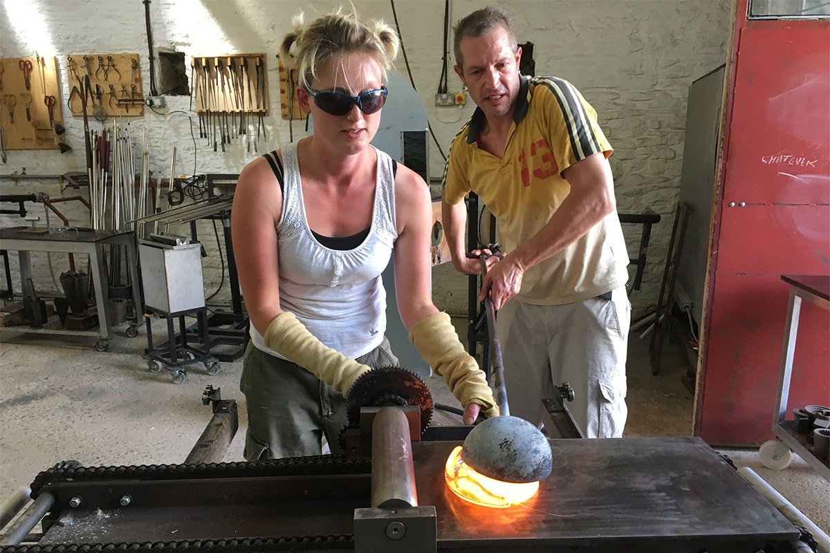 Extend your glassmaking experience by exploring further techniques. Over five days you will work on improving your glassblowing skills in the hotshop, revisit basic skills and progress onto colour work (including gold and silver leaf), bit-work, goblets, and sculptural glassblowing. In the kiln area we will look at further fusing techniques such as pattern bar, surface techniques such as reactive and iridescent fusing, as well as lost wax mould-making for casting. There will also be the opportunity to further lampworking skills with beads, jewellery inclusions and sculptural techniques.